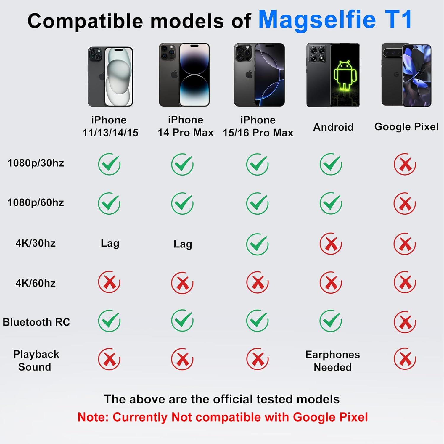 Not compatible with: iPhone 17 series / Google Pixel.